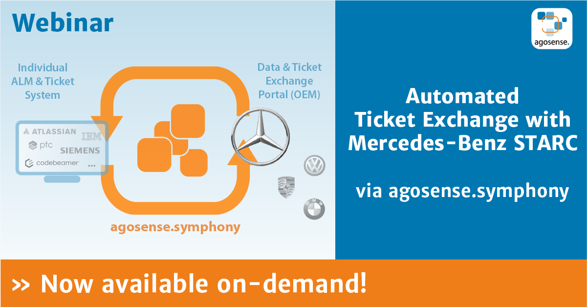 As a supplier in the automotive industry, you need to exchange development tickets and issue reports with Mercedes-Benz on a regular basis, automated with a direct connection to your internal ticket or ALM system?